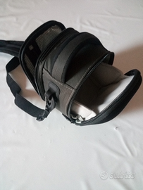 Vendo borsetta morbida con tracolla porta macchina fotografica con due tasche, una principale per la macchina, l'altra per eventuali accessori. Può essere usata per trasportare anche il navigatore. Dim. 18x16x10cm