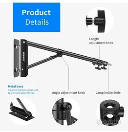 Compatibilità: questo braccio per montaggio a parete è perfetto per supportare apparecchiature fotografiche come luci stroboscopiche video da studio, monolight, softbox, ombrelli e riflettori...ecc