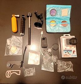 Usata 4 volte per un viaggio di 15 giorni, perciò è da considerarsi NUOVA. Caratteristiche Cam 4K/20fps - 1080p/60fps. Obiettivo ultra-angolare Wify-e Blue thoot con custodia sub fino a 40 mt. + Set di filtri: rosa, arancione, giallo. Scheda di memoria Samsung EVO Plus 64 gb. classe "10". Il tutto viene spedito in custodia come da foto. Solo se realmente interessati disponibile filmato che mostra il perfetto funzionamento touch screen (che garantisco sin da ora).