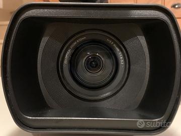Particolarmente interessante in questa camera è l'ottica zoom 22x ad elevate prestazioni sviluppata appositamente per le produzioni HD video professionali (con la capacità di zoom che ci si aspetterebbe solo da un'ottica intercambiabile professionale di livello broadcast) che combina 18 elementi in 12 gruppi e sfrutta un elemento ottico denominato UHR (Ultra High Refractive) e lenti asferiche. Questa tecnologia ottica è in grado di fornire un'altissima risoluzione con uno zoom da 28mm a 616mm (equivalente 35mm) in grado di coprire un ampio campo di utilizzi, dal grandangolo al tele, senza necessitare di ottiche aggiuntive. L'unità ottica è dotata di tre ghiere di regolazione, uno zoom meccanico, una ghiera di regolazione del fuoco e una per l'iris con la possibilità di poterle utilizzarle tutte in modalità manuale così come accade con le ottiche intercambiabili.