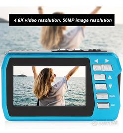 1. **Doppio Schermo HD**: Risoluzione video fino a 4.8K e immagini da 56MP. Schermo IPS da 3.0 pollici sul retro e 2 pollici sul davanti, con timer per selfie di 2, 5 e 10 secondi.