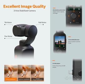 Capture 1 Vlogging Camera Gimbal stabilizzato a 3 assi portatile Vlog Camera Modifica con un clic Ai Smart Tracking Video 4k/60fps Obiettivo grandangolare 116