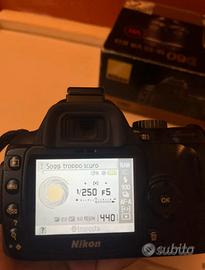 Vendo Nikon D60 in ottime condizioni con obiettivo af-s 18-55 mm 1:3.5-5.6 G VR + batteria + caricatore + scheda SD 1GB + filtro obiettivo 6 stars + filo per trasmettere le foto nel televisore + scatola originale con manuali d'istruzione