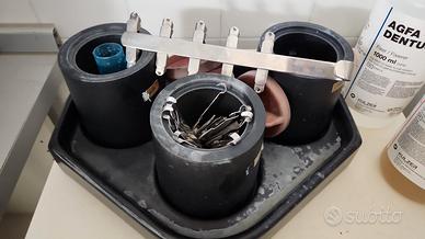vendo camera oscura per sviluppo radiografie endorali dentista / odontoiatra completa di liquidi per sviluppo e fissaggio , pinzette porta latrine e centratori.