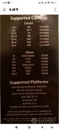 Non necessita di alcun computer o di una connessione internet (come per molte applicazioni) per creare una rete e si connette direttamente alla vostra reflex Canon o Nikon, tramite l’apposito dispositivo collegato via usb.
