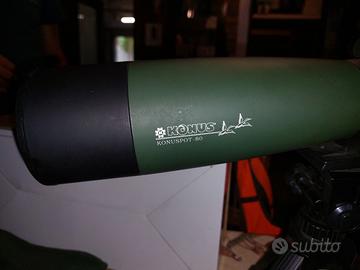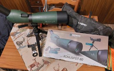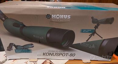 Cannocchiale Konus Konuspot-80 zoom 20-60x80 completo di tutti gli accessori (custodia, cavalletto, adattatore per cellulare e adattatore per macchina fotografica) piccolo segno su tappo di protezione ottica