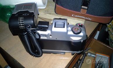 Macchina fotografica Canomatic due pezzi. Usate pochissimo. Non più usate da anni. Vendesi cosi come sono in blocco con borsa tracolla e accessori ( flash) viste e piaciute. Non Provate. Visibile a roma zona eur