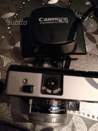 Vendo macchina fotografica vintage, anni '70, Canomatic M70, lenti Canon 40mm 2.8. 126 film camera con case originale.