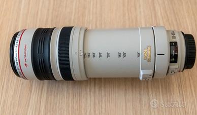 Canon EF 100-400mm f/4.5-5.6 L IS USM | Condizioni Eccellenti + Filtro Marumi Vendo obiettivo professionale Canon serie L (Luxury), un'ottica leggendaria per versatilità e qualità d'immagine. L'obiettivo è in condizioni estetiche e meccaniche eccellenti, sempre protetto con filtro UV e conservato con la massima cura. Incluso nel prezzo il prestigioso Filtro Marumi UV Haze da 77mm (Made in Japan), ideale per proteggere la lente frontale e migliorare la nitidezza eliminando la foschia ultravioletta. Specifiche Tecniche Complete CARATTERISTICHE OTTICHE Focale: 100-400 mm Angolo di campo: 24.4 - 6.2° Formato compatibile: Full Frame (FF) e APS-C Diaframma Max: f/4.5-5.6 Lamelle diaframma: 8 (per uno sfocato morbido e naturale) Schema Ottico: 17 elementi in 14 gruppi (incluse lenti in fluorite e vetri Super UD) Min. distanza fuoco: 1.80 metri Rapporto riproduzione: 0.20x FUNZIONALITÀ Tipo di zoom: A pompa (Push-Pull), con ghiera di regolazione della frizione (Smooth/Tight) Stabilizzazione: Sì, integrata (IS - Image Stabilizer) Messa a fuoco: Motore AF a ultrasuoni (Ring-USM) veloce e silenzioso Messa a fuoco interna: Sì (l'obiettivo non ruota durante la focheggiatura) COSTRUZIONE E NOTE Anello treppiede: Incluso (originale, amovibile e rotante) Moltiplicatori: Compatibile con Extender Canon EF 1.4x e 2x Diametro filtri: 77 mm Paraluce: ET-83C in dotazione Dimensioni: 92 x 189 mm Peso: 1380 g Stato dell'oggetto Lenti: Perfette, prive di graffi, muffe o funghi. Meccanica: Sistema a pompa fluido; lo stabilizzatore e il motore USM lavorano silenziosamente. Estetica: Barilotto pulito, scritte integre, gomme in ottimo stato. Contenuto della vendita Obiettivo Canon EF 100-400mm L IS USM. Filtro Marumi UV Haze 77mm. Paraluce originale Canon. Anello per treppiede originale. Tappi frontale e posteriore. confezione originale