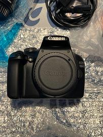 Corpo macchina Canon 1100D Obiettivo 18-55mm Carica batteria originale 1 Batteria