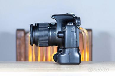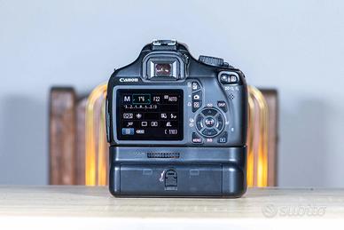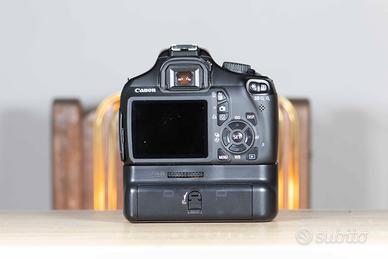 Kit fotocamera reflex digitale Canon 1100D con obiettivo 18-55mm III e battery grip. La macchina fotografica si presenta in ottime condizioni funzionali ed estetiche, sensore pulito e scatta ottime fotografie. La vendita comprende: -Canon Eos 1100D -Canon EF-s 18-55mm III -Batterygrip -2x Batterie -Caricabatterie -Strap - Obiettivo Canon EF-S 18-55mm III - Battery grip per una presa migliorata e maggiore autonomia