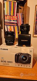 Canon 1300 d con obiettivo in dotazione 18-55 mm e obiettivo 50 mm yongnuo.