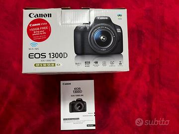 Vendo Canon EOS 1300D in condizioni eccellenti, usata pochissimo e sempre tenuta con cura. La fotocamera è perfettamente funzionante, senza graffi né segni d’usura. 🔹 Incluso nel prezzo: • Fotocamera Canon EOS 1300D • Obiettivo Canon EF-S 18-55mm IS II • Borsa originale Canon • Batteria e caricabatteria originali