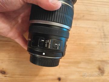 vendo obiettivo Canon 17-55 mm f2.8 luminoso, ben tenuto. con paraluce e scatola originale.
