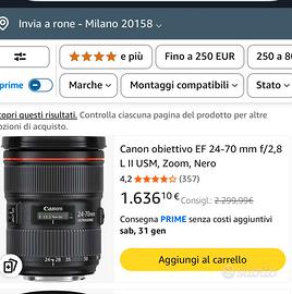 Canon 24-70 f2.8 L ii perfetto usato pochissimo come nuovo con scatola scontrino ! Nessun difetto ne polvere indistinguible dal nuovo !