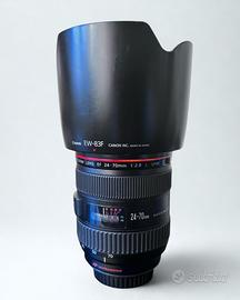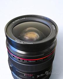 Canon 24-70 f2.8 serie L USM usato pochissimo e ben conservato, ottime condizioni estetiche. Lente completa di paraluce, tappi, sacca e scatola originale.