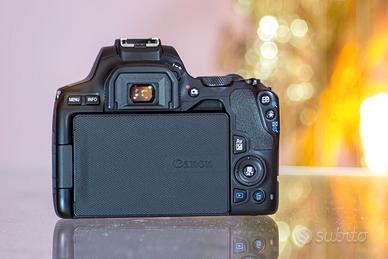 Vendo fotocamera reflex Canon 250D con obiettivo EF-S 18-55 IS STM in ottime condizioni funzionali ed estetiche, praticamente come nuova.