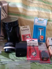 É presente anche un duplicatore, vari cavi per fare scatti senza premere il pulsante della macchina, vari flash, vari filtri e ghiere. Non conosco neanche a cosa servano determinati accessori.