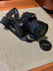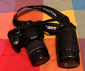 CANON 350D con obiettivo 28/80 + obiettivo aggiuntivo 70/300, vendo per inutilizzo, completa di borsa, caricatore batteria, cavo, + 1 batteria aggiuntiva nuova (ancora in blister).