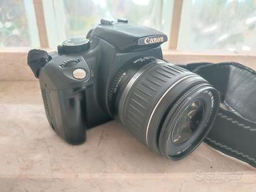 Vendo Canon 350d in condizioni tutto sommato buone. Fotocamera in condizioni estetiche e funzionali perfette. In dotazione obbiettivo zoom standard 18-55 anch'esso funzionante,tengo a segnalare che ha un piccolo segno sulla lente frontale ma che non influisce sulla resa finale delle foto. In dotazione ne.1 batteria, caricabatteria, cinghia da tracolla. Non ha più il tappo copri obbiettivo che è andato perso. A chi acquista regalo piccola borsetta x trasporto fotocamera.
