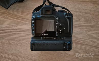 Macchina fotografica funzionante, manca il tappo laterale copri connettori. vendita senza scatola, ma con i relativi accessori che si vedono in foto, ovvero: -carica batterie doppio nuovo -4 batterie (2 nuove e 2 usate ma funzionanti) -tappo copri specchio -battery grip con doppia batteria -tracolla -memory card 4gb eventuale spedizione solo con tutto subito.