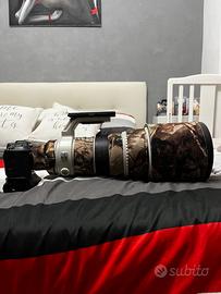 Vendo per passaggio a corredo Nikon. Insieme all’obiettivo vendo anche moltiplicatore Canon 1.4X III versione e copertura mimetica Camo.