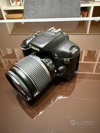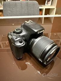 Testo dell'Annuncio Vendo per passaggio a sistema superiore, splendida reflex Canon EOS 550D (Rebel T2i) completa di obiettivo zoom stabilizzato Canon EF-S 18-55mm f/3.5-5.6 IS. La macchina è perfetta per chi vuole iniziare a studiare fotografia o per chi cerca un corpo macchina affidabile per video e scatti di qualità superiore a uno smartphone.
