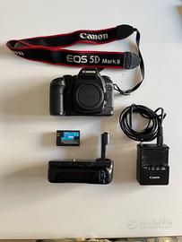Canon 5d mark ii, ottimo stato pochi scatti meno di 15000. Include corpo macchina ( con tracolla originale canon) , una batteria, caricabatterie, impugnatura per doppia batteria