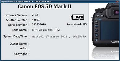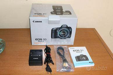Canon 5D MKII in perfette condizioni,nessun difetto estetico, senza segni ne polvere su mirino e sensore.Meno di 47.000 scatti. Completa della dotazione originale + compact flash 16 GB +Flash Metz 44 af1 digital, Battery grip, Scatto remoto e Ingranditore per schermo. Solo in blocco.Ho foto del materiale completo se seriamente interessati. Pref ritiro a mano ma posso spedire,ho la scatola originale.
