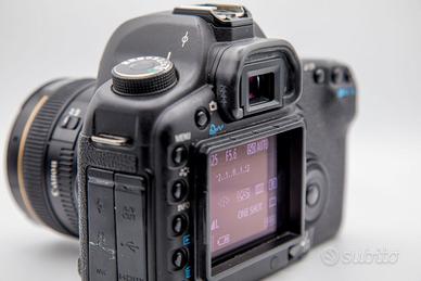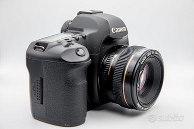 Eccezionale combo full frame per iniziare a fotografare con un corpo macchina professionale e un'ottica luminosissima. Corpo CANON 5D Mark II con circa 14.000 scatti, usato prevalentemente per video. Condizione generali ottime, i tappi in gomma dei connettori laterali andrebbero sostituiti, sul monitor è presente una cornice montata per protezione. Testata e PERFETTAMENTE FUNZIONANTE CANON EF 50mm f/1.4 Ottica luminosissima, perfetta per i ritratti, bokeh cremoso, anche qui, funzionamento PERFETTO, solo qualche granello di polvere all'interno ma non inficia in nessun modo la qualità d'immagine. Il kit comprende: CORPO MACCHINA CANON 5D Mark II Ottica CANON 50mm f/1.4 Batteria Caricabatteria Compact flash 32GB Pronto per iniziare a scattare Posso consegnare a mano Spedizione disponibile No perditempo e affaristi