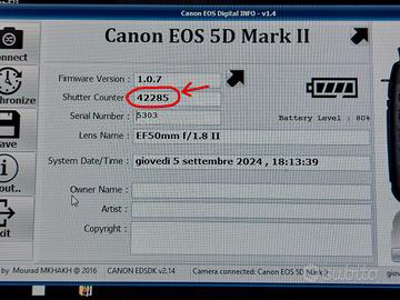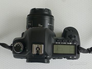 Macchina in ottime condizioni con pochi scatti, compreso caricatore, 2 batterie e l'obiettivo Canon 50 mm f /1.8 II