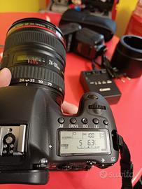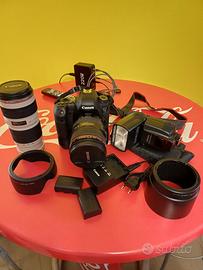 canon 6d + ottica 24-105 + ottica 70-200 + flash, paraluce e borsa.