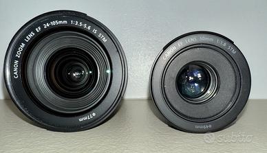Utilizza obiettivi Canon EF e io a corredo do il 24-105mm (3.5 - 5.6) e il 50mm (1.8).