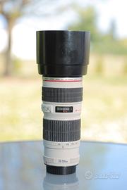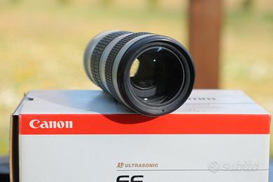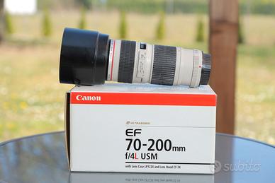 Vendo obiettivo Canon 70 200 f4 non stabilizzato completo di paraluce, tappo anteriore, posteriore, sacca per il trasporto e scatola. Perfettamente funzionante, l'autofocus non sbaglia un colpo. Obiettivo molto nitido e con uno sfuocato eccellente. Per correttezza vi avviso che presenta un po' di muffa all'interno, ma le foto non ne risentono come qualità. Vendo per passaggio a versione stabilizzata.