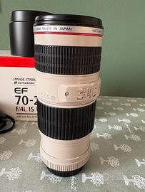 Vendo per passaggio a ottica piu luminosa il verstile Canon 70-200 Is Usm serie uno. Diaframma 4, adatto per ogni uso, dallo sport, ai concerti, cronaca e attualità. Paga un po’ a buio ma con un buon corpo macchina si risolve con iso alti. Scatola, tappi, paraluce, sacchetto in pelle originali Canon.