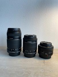Vendo in ottime condizioni: - Canon 700D Con obiettivi: - 55 - 250 mm Canon - 18 - 55 mm Canon - 35 mm f 1.2 Yungnuo + SD 32 GB + Zaino EOS