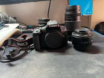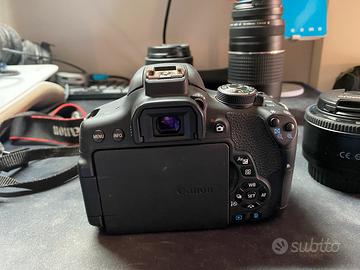 Vendo Canon EOS 750D in ottime condizioni, perfettamente funzionante, ideale sia per chi si avvicina alla fotografia che per utenti più esperti in cerca di un secondo corpo macchina affidabile. Compreso nel pacchetto ci sono tre obiettivi versatili, perfetti per coprire ogni situazione fotografica: