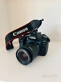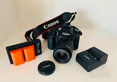 Canon 80d con obiettivo 18-55, batteria e carica batteria originali Canon , due batterie aggiuntive vemico con proprio caricatore e custodia. Condizioni estetiche e di funzionamento ottime. Compreso di scatola.