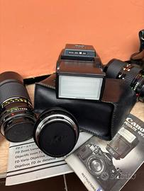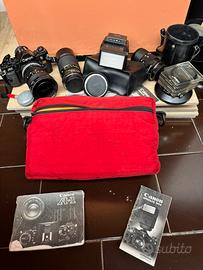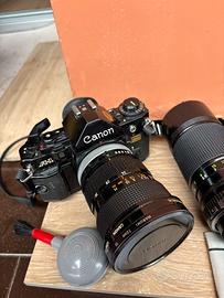 Set completo fotografo Canon A1 completa di teleobiettivi vari, flash 199A, filtri Cokin con adattatore.