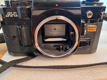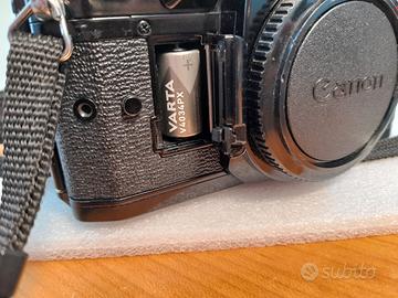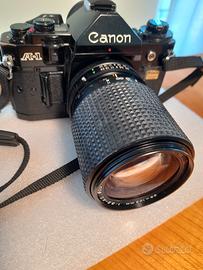 Vendo fotocamera analogica CANON A1 con zoom TOKINA RMC 35-105 f 3.5/4.5, che non presenta alcun difetto. La fotocamera è perfettamente funzionante e dotata di batteria da 6 volt ,tracolla originale, oculare ,tappi del corpo macchina e dello zoom(posteriore).Inoltre ha ancora il suo libretto di istruzioni. Un solo difetto, la piccola frattura dello sportellino della batteria foto 6 , che però funziona perfettamente. Prezzo non trattabile.