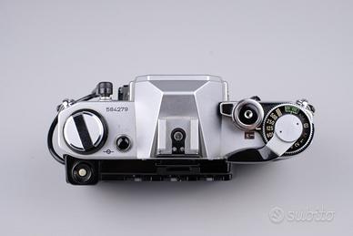 Reflex analogica 35mm Canon AE-1 in buone condizioni. Perfettamente funzionte, testata. Munita di Canon Data Back A in ottime condizioni. Se interessati posso aggiungere obiettivo zoom Canon FD Macro 35-105 f3.5, visibile nel mio profilo. Preferisco scambio a mano ma posso spedire.