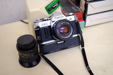 canon ae 1+ ottica FD 50MM 1,8 + winder + FD vivitar 28/2,5 vintage anni 70