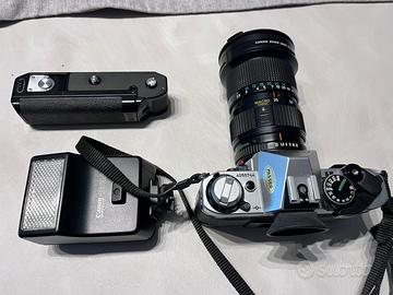 Vendo macchina fotografica Canon AE1 program per inutilizzo. La macchina é dotata di motore ausiliario + flash. Non sono presenti danni da urti o graffi. Sempre tenuta dentro la custodia.