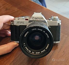 Vendo macchina fotografica Canon AV-1 causa inutilizzo. È in ottime condizioni. La macchina è così come in foto. Non ho altri accessori oltre quello che vedete.