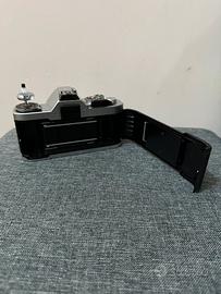 Monteverde! Proposta una elegante Canon AV-1, reflex analogica 35mm introdotta alla fine degli anni '70, accompagnata dal suo flash originale Canon Speedlite 011A. Un kit completo e perfetto per collezionisti di materiale Canon vintage, o chi desidera entrare nel mondo della fotografia su pellicola. La AV-1 è apprezzata per la sua modalità a priorità di diaframma, che consente di scattare con facilità mantenendo il pieno controllo creativo sulla profondità di campo. L'esposimetro interno TTL guida lo scatto in modo affidabile, rendendola una macchina intuitiva ma capace di ottimi risultati. Il flash Speedlite 011A, compatto e dedicato, si integra perfettamente con il sistema e garantisce una gestione semplice della luce in ambienti interni o condizioni di scarsa illuminazione. CARATTERISTICHE TECNICHE Reflex analogica 35mm Modalità Av (priorità di diaframma) Otturatore elettronico (circa 2s - 1/1000s) Esposimetro TTL integrato Attacco obiettivi Canon FD Alimentazione: batteria 4LR44 (non inclusa) FLASH Canon Speedlite 011A Numero guida ~ 14 (ISO 100) Sensore automatico integrato Alimentazione con batterie AA Montaggio diretto su slitta hot shoe LA FOTOCAMERA VA CONTROLLATA. SI VENDE QUINDI COME NON FUNZIONANTE, DA REVISIONARE. VISTO E PIACIUTO