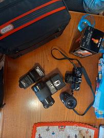 macchina fotografica canon av-1 obbiettivo soligor 80-200mm obbiettivo visitare serie 1 flash martello m 500 Borsa