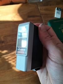Vendo Canon Canonet G-III QL. Eccellentissime condizioni estetiche. Obiettivo pulito, mirino altrettanto lindo, telemetro contrastato e tarato. Perfetto funzionamento meccanico. Esposimetro reattivo, ma non affidabile nelle misurazioni. Venduta con la sua borsa pronto in pelle, e con il suo flash, che ha bisogno di revisione: lo sportellino batterie ha due gancetti rotti, necessita di revisione ai contatti.