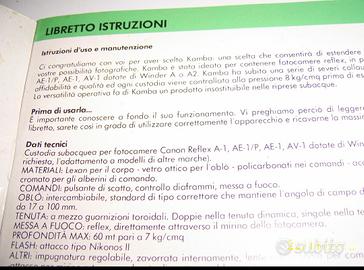 la custodia è nuova,mai immersa, corredata da un macchina Canon AV1 (analogica ) con winder nuovo. Adattabile, con qualche piccolo accorgimento, anche alle digitali. La suddetta attrezzatura fa parte della mia collezione subacquea, mantenuta sempre con la massima cura.