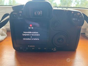 Canon D50 con errore 30/50, le ultime volte che l'ho usata ogni 5-6 foto dovevo spegnerla e riaccenderla per l'errore. si vende come guasta / pezzi di ricambio. completa di caricabatterie e 1 batteria
