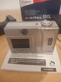 La prima fotocamera digitale Canon anno 2000 in ottime condizioni, completa di caricabatteria, custodia originale in pelle e scheda memoria.